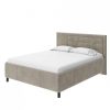 Նրբագեղ մահճակալ՝ դեկորատիվ կարով զարդարված գլխամասով։ Մոդելը պատրաստված է տախտակից։ Անկողնային պաստառագործություն՝ շքեղ էկո կաշվից։ Խնդրում ենք նկատի ունենալ, որ գլխամասի հակառակ կողմը ծածկված է spunbond-ով: Մոդելն ավելի մատչելի դարձնելու համար մահճակալի ներքևի հատվածը պատրաստված է բեժ սփունբոնդից։ Սա ապահովում է սենյակի հատակի ծածկույթի անվտանգությունը, ինչպես նաև անհրաժեշտության դեպքում հեշտացնում է մահճակալի տակի հատվածի փոշեկուլով մաքրումը: