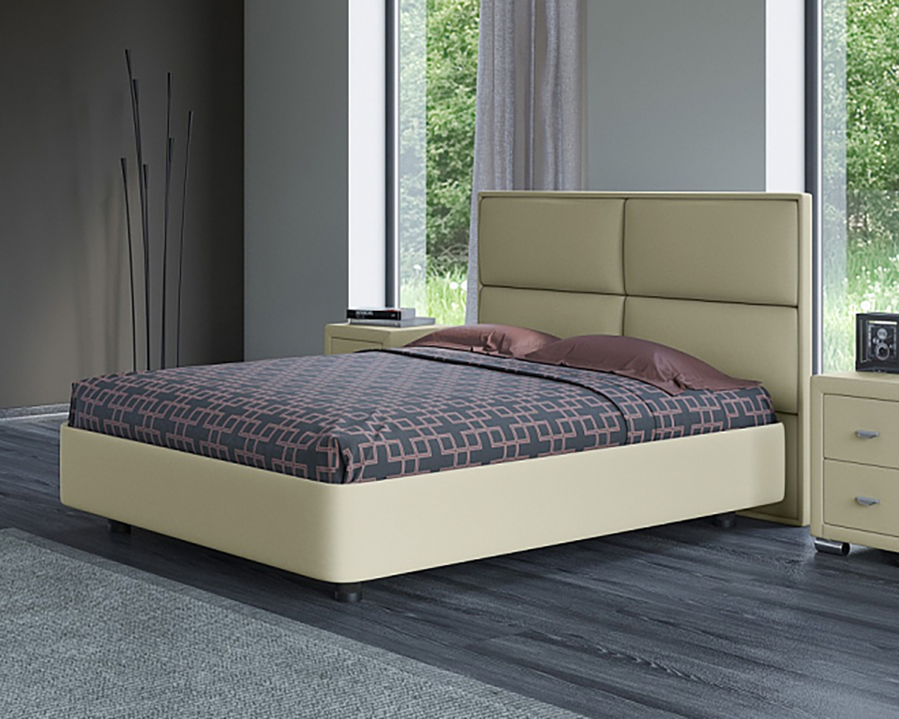 Այս մոդելում գլխավոր երկրաչափական դեկորը և դիզայնի պարզությունը համակցված են շրջանակի ձևերի հարթ գծերի և փափկության հետ։ Կլորացված անկյուններով ուղղանկյուն հիմքը մտնում է բարձր գլխամասի մեջ, որը կոկիկ շերտով բաժանված է 4 հավասար ուղղանկյունների: Այն ծավալուն և փափուկ տեսք ունի, հաճույքով կհենվեք դրա վրա քնելուց առաջ : Մոդելը պատրաստված է chipboard-ից։ Մահճակալի պաստառագործությունն ունի երկու տարբերակ՝ շքեղ էկո կաշվից կամ կահույքի կտորից։ Հիմքը պատրաստված է նրբատախտակից՝ spunbond-ով։