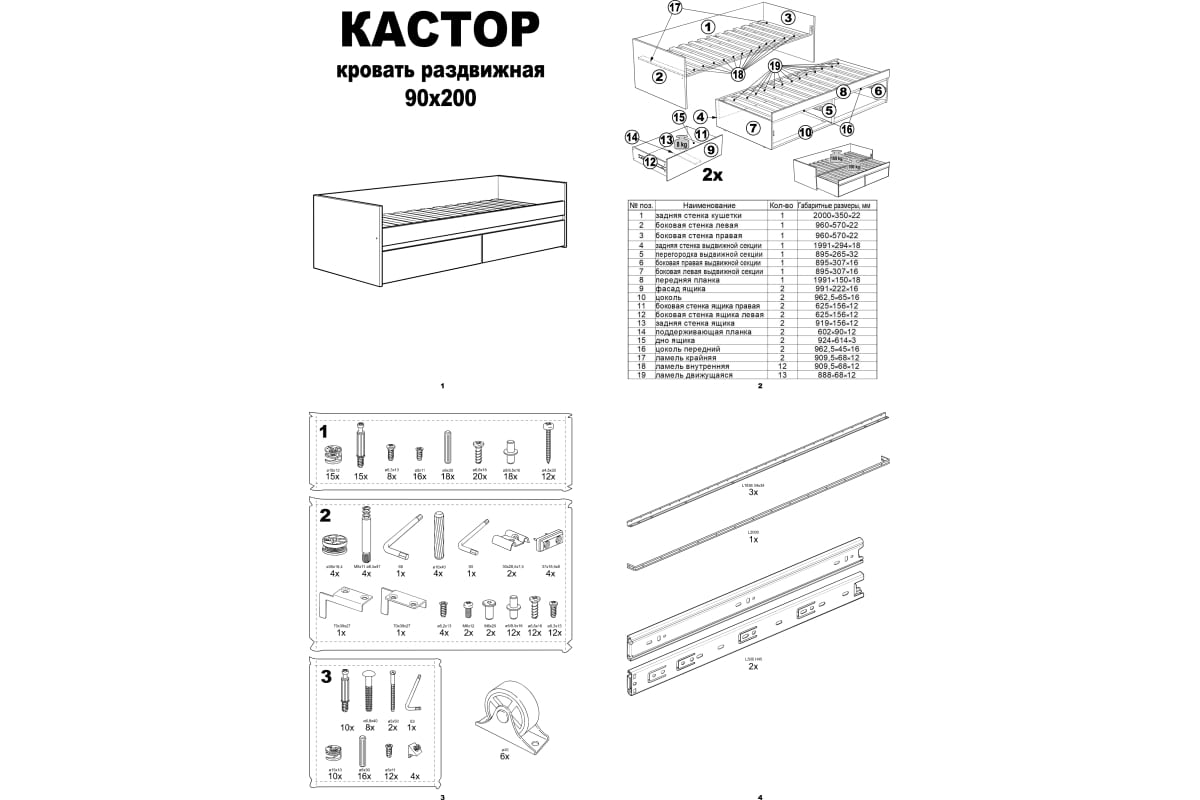Կաստոր բացվող 90*200 սպիտակ