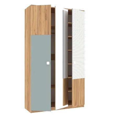 Зеркало на центральной двери позволяет видеть свое отражение в полный рост и одновременно выполняет функцию визуального расширения пространства. Правый и левый фасады с лакированными цветными вставками можно менять местами.